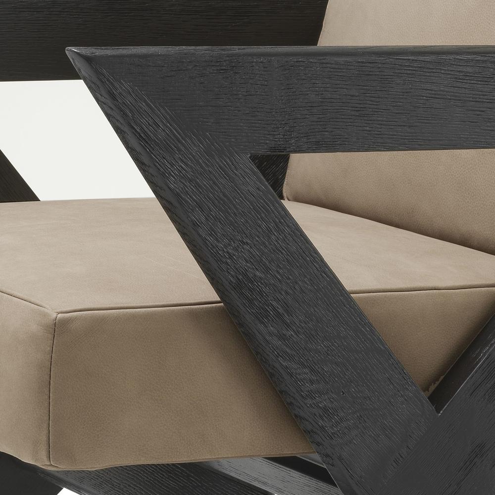 Dress up your dining room with the Felippe dining room chair. With X-shaped legs for an exquisite minimalist style, it is made of black oak and upholstered in beige nubuck buffalo leather. The ultra-padded seat and backrest offer great seating comfort